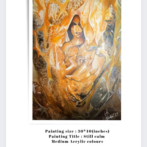 Name Of The Artwork: Rhythm Caption Of Artwork: Rhythm is abstract painting. Medium Mix media, size 36*48 Name Of The Artwork: Culture Caption Of Artwork: Abstract painting medium-mix media, size 36*48 Name Of The Artwork: Devotion Caption Of Artwork: Abstract art medium acrylic , size 24*30 Name Of The Artwork: Still calm Caption Of Artwork: Abstract with texture, medium - acrylic, size - 30*40