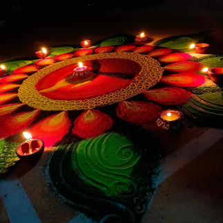 Name Of The Artwork: Pencil sketch Caption Of Artwork: There is a little bit of devil in her angel's eye Name Of The Artwork: Canvas painting Caption Of Artwork: Lord Ganesha painting Name Of The Artwork: Rangoli art Caption Of Artwork: Rangoli art